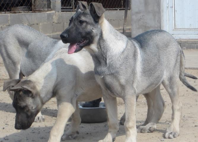 狼青犬是中国犬类爱好者不断用优秀狼种犬改良选育而成,具有典型狼种犬的体貌特征,尾长而粗,三角眼,眼睛为黄褐色或深褐色,身体外形匀称,体质结实,运动灵活,毛色现有铁青、青白、草黄。